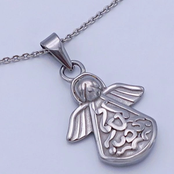 Přívěsek z leštěné chirurgické oceli andělíček.