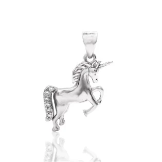 Stříbrný přívěšek v podobě jednorožce zdobeného zirkony