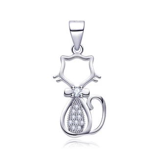 Stříbrný přívěšek kočka zdobený zirkony čiré barvy