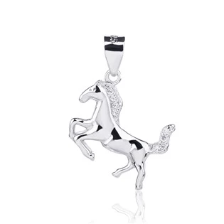 Stříbrný přívěšek koník zdobený zirkony čiré barvy