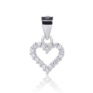 Drobný stříbrný přívěšek ve tvaru srdíčka zdobeného zirkony čiré barvy