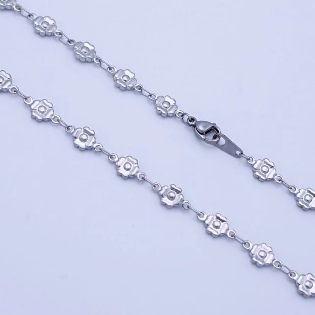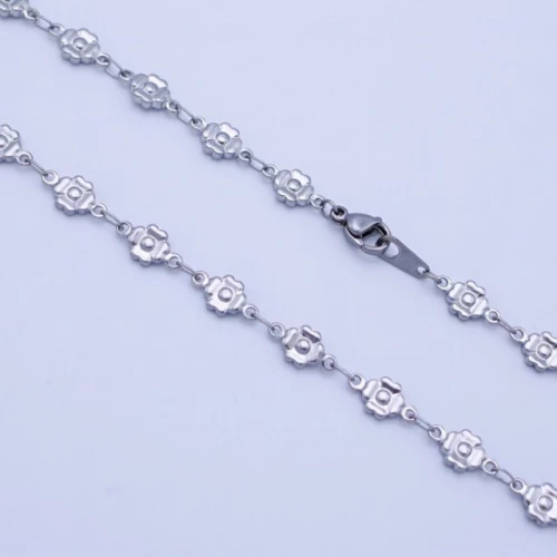 Řetízek z leštěné chirurgické oceli je složený z oboustranných kytiček o velikosti 5mm. Šířka 5mm Délka na výběr od 40-45-50-55-60-65-70-75-80cm . K řetízku nabízíme také náramek a náramek na kotník. 1209