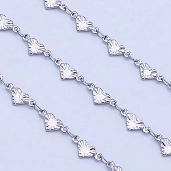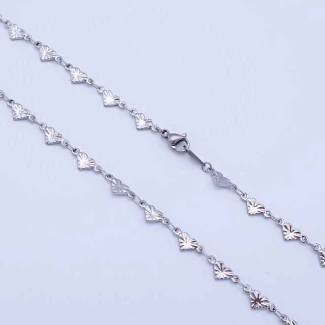 Řetízek z leštěné chirurgické oceli je složený z oboustranných srdíček o velikosti 4x5mm, které jsou zdobené rytím. Šířka 4mm Délka na výběr od 40-45-50-55-60cm . K řetízku nabízíme také náramek a náramek na kotník. 1201