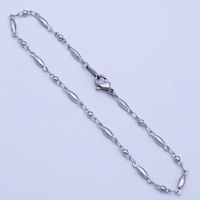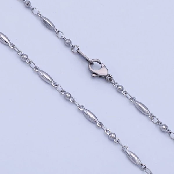 Řetízek z leštěné chirurgické oceli je složený z válečků 2x7mm a kuliček 2mm. Zapínání na karabinu. Délka na výběr od 40-45-50-55-60-65-70-75-80cm K řetízku nabízíme také náramek. 1195