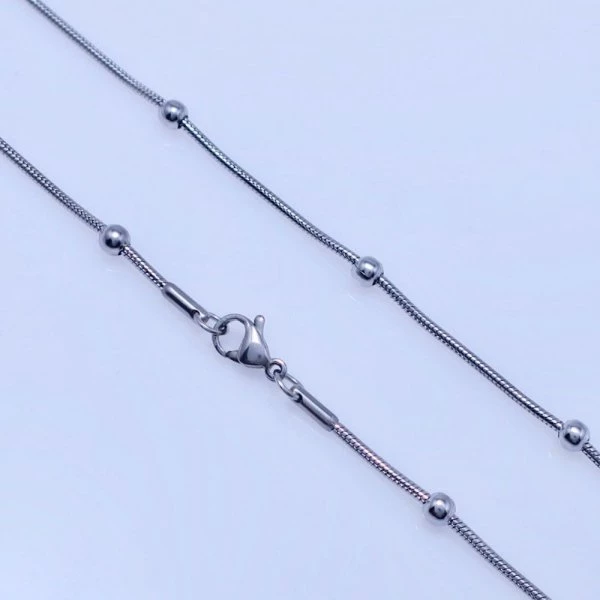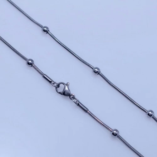 Řetízek z leštěné chirurgické oceli lanko o šířce 1,2mm je zdobený kuličkami 3mm. Délka 50cm. Chirurgická ocel je vhodná pro alergiky na běžné kovy. 276