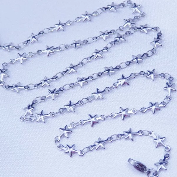 Dámský oboustranný řetízek zˇleštěné chirurgické oceli hvězdičky . Šířka 5mm Délka na výběr od 40-45-50-55-60cm K řetízku nabízíme náramek . Chirurgická ocel je vhodná pro alergiky na běžné kovy . 237
