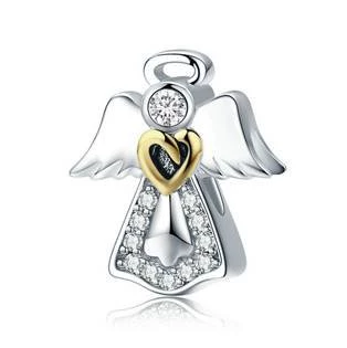 Stříbrný přívěšek korálek ve tvaru andělíčka dekorovný zirkovy čiré barvy Přívěšek lze měnit a vzájemně kombinovat přesně podle aktuální nálady Uvedená cena korálku je bez řetízku. Korálek je určen pro kombinování s dalšími šperky z naší kolekce náramků a řetízků. Pomocí tohoto speciálního korálku a si můžete vytvořit jedinečný a neopakovatelný šperk, který navíc můžete měnit podle nálady a příležitelnosti. Stačí vyměnit korálky a máte nový originální náramek nebo náhrdelník. Parametry materiál stříbro (Ag 925-1000) povrchová úprava rhodium druh kamene zirkon rozměr otvoru 4 mm hmotnost 1,94 g výška korálku 13 mm