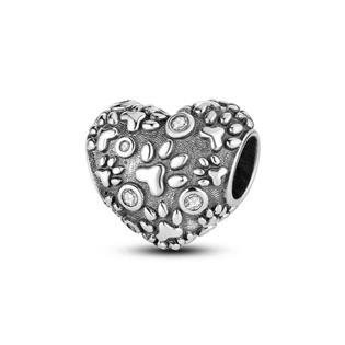 Přívěšek korálek ve tvaru srdíčka dekorovaného motivem psích tlapek