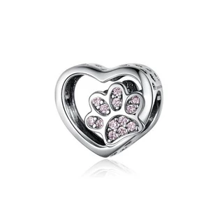 Stříbrný přívěšek korálek ve tvaru srdíčka s růžovými zirkony