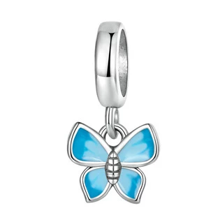 Stříbrný přívěšek korálek na náramek s přívěškem v podobě modrého motýlka