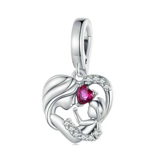 Stříbrný přívěšek korálek na náramek se zavěšeným přívěšek s tematikou matka a dítě