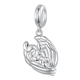 Stříbrný přívěšek korálek na náramek se zavěšeným přvěskem ve tvaru andílka s křídly