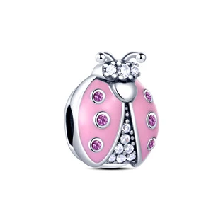 Stříbrný přívěšek korálek na náramek ve tvaru berušky s růžovými krovkami zdobenými zirkony