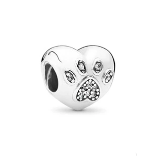 Stříbrný přívěšek korálek ve tvaru srdíčka zdobeného motivem psí tlapky