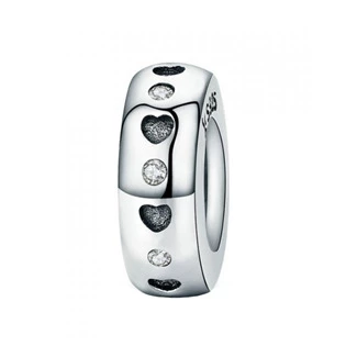 Stříbrný přívěšek korálek na náramek dekorovaný symboly srdíček a zirkony čiré barvy