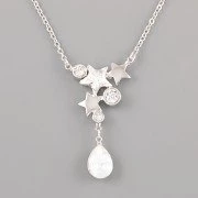 NÁHRDELNÍK S HVĚZDAMI zdobí Slzička Swarovski 10mm. Náhrdelník je zdobený bílou hvězdičkou Swarovski a třemi bílými kulatými kamínky Swarovski. Délka 45cm. Náhrdelník Rhodiovaný