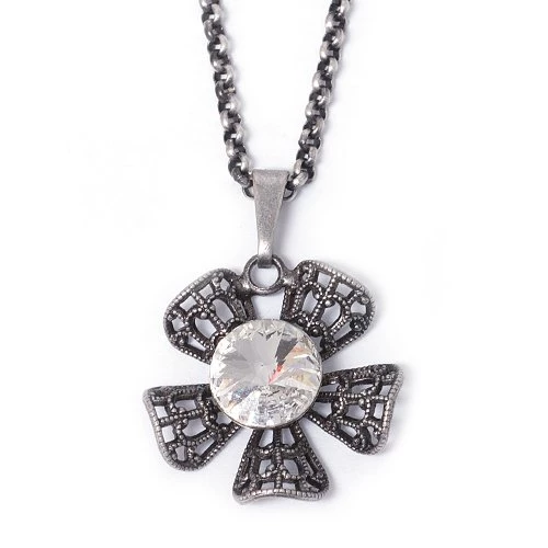 Stále populární filigránová kytička v provedení ,,francouzské starostříbro s nádherným crystalem Swarovski - průměr kamene 8 mm. Délka řetízku 41 cm + 6 cm adjusta V nabídce i náušnice k tomuto náhrdelníku