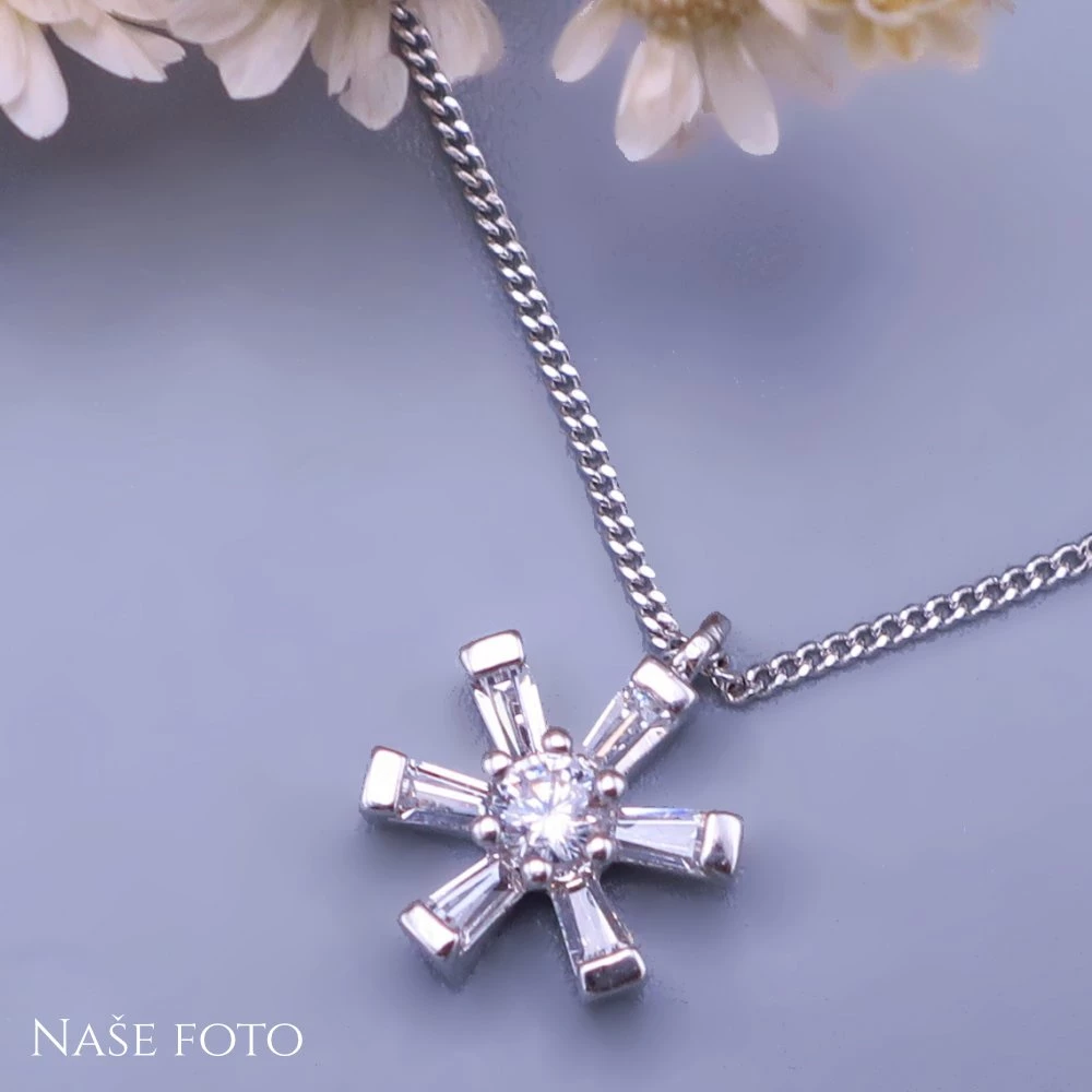 Přívěsek je zavěšen na řetízku o šířce 0,9mm a délce 45cm.