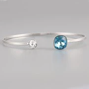 Náramek zdobený Swarovski Elements - čtvereček 10mm a Šaton 6mm. Velice módní otevřený náramek Rhodiováno.