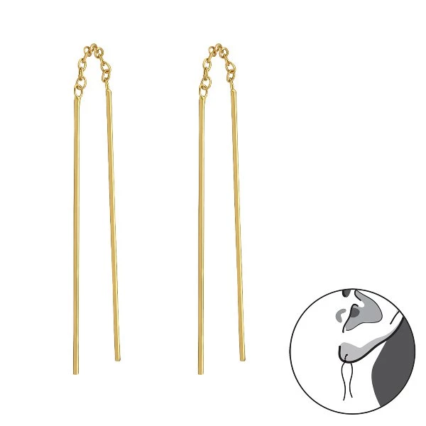 Provlékcí náušnice Materiál Šperkovní stříbro 925-1000 Dodatečné pokovování 18k Zlato + Antikorózní úprava Stříbro hmotnost 0.80 g Velikost 0.6 mm x 37 mm Dvouletá záruka