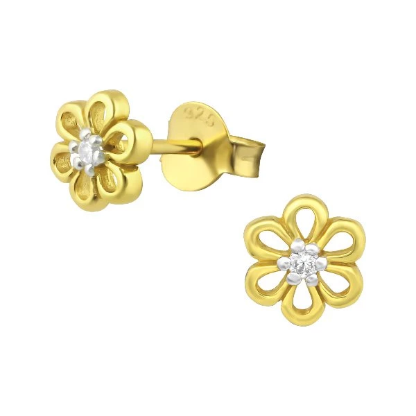 Materiál Šperkovní stříbro 925-1000 Dodatečné pokovování 18k Zlato, Stříbro hmotnost 0.7 g Velikost 6 mm x 6 mm Zirkony Počet kamenů : 2 | Osazení : Ručné osazení Barva White Zirkon Dvouletá záruka