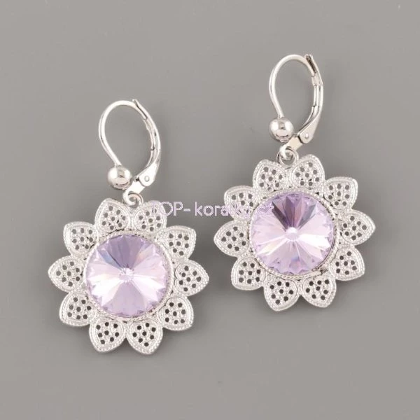Na středu umístěná zářící Rivoli Swarovski Elements je zdobená filigránovými květinovými lístky. Velikost kamene 10mm Délka 39mm, šířka 26mm.