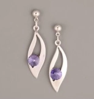 Náušnice ve tvaru lístku zdobené kamenem Swarovski ve velikosti 6mm Zapínání na puzetku