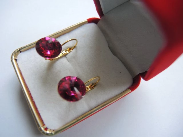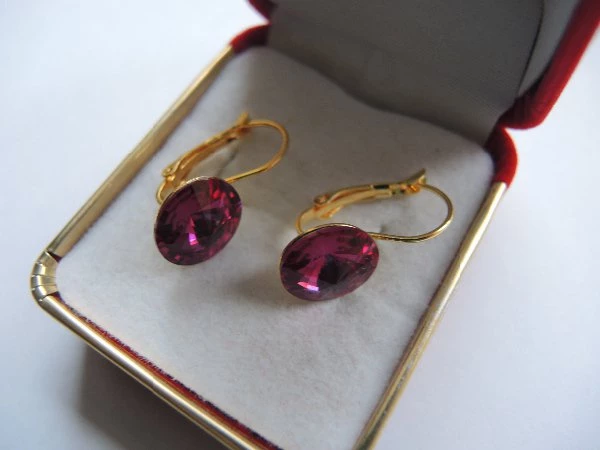 Zlacené náušnice Swarovski Elements Rivoli-Fuchsia Foiled Velikost kamene 12mm
