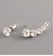 Náušnice se skládají z jedné náušnice s 5 kamínky Swarovski Elements, které jsou řazené od největšího k nejmenšímu a na uchu tak vytváří dojem, že máte pětkrát píchlou dírku. Druhá náušnice je jen 6mm kamínek Swarovski Elements. Cena za pár.