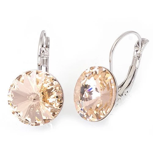 Náušnice se třpytivým kamenem Swarovski. Velikost kamene 14mm, rhodiováno, zapínání na klapku. Barva broskvová