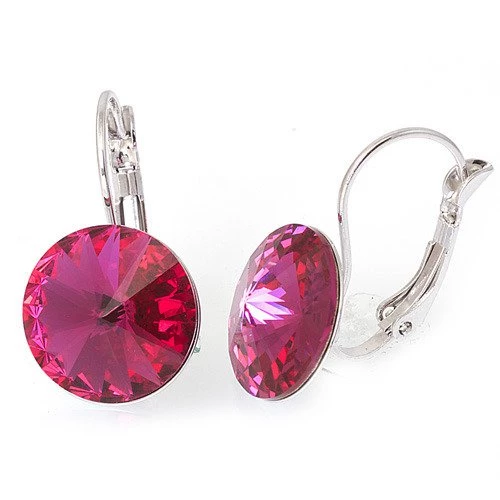 Náušnice se třpytivým kamenem Swarovski. Velikost kamene 14mm, rhodiováno, zapínání na klapku. Barva tmavě růžová