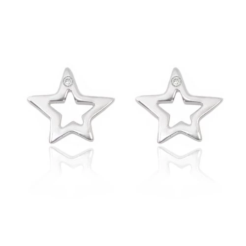 Náušnice hvězdy se Swarovski Elements - bílé (crystal), rhodium, 17x17mm. Zapínání na puzetku Dvouletá záruka
