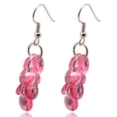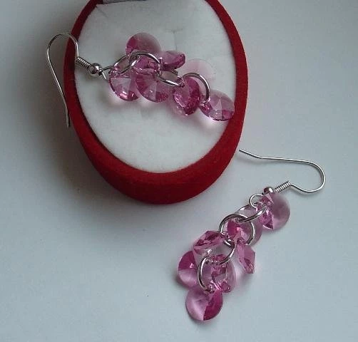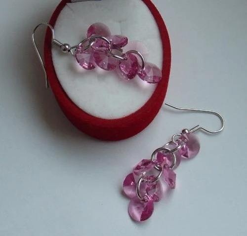 Náušnice se Swarovski Elements, hrozny ze Swarovski rivoli, visací-afroháček, rhodium, růžové (rose), délka 5cm, šířka 1cm, neobsahují nikl. Dvouletá záruka
