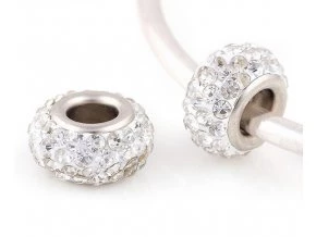 Korálek bílé barvy posetý kamínky čiré barvy.
