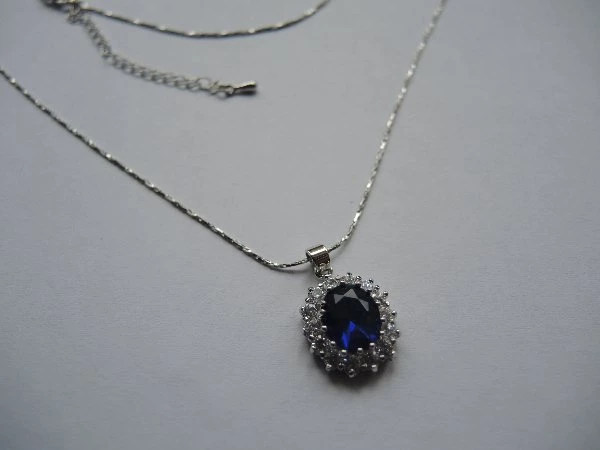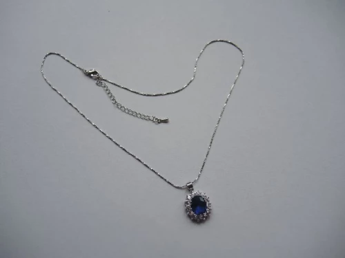 Jednoduchý elegantní náhrdelník s oválkem v modré barvě doplněný o zářivé kamínky v bílé barvě. Rozměr oválku 15 x 14 mm. Celková délka se zavěšením je 22mm Součástí náhrdelníku je hladký řetízek o délce 41 cm + 6.5 cm adjusta (nastavitelná délka). Povrchová úprava : rhodium (vysoký lesk a odolnost)