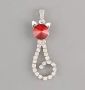 Kočičí přívěsek je určený zdobí RIVOLI SWAROVSKI 8mm na hlavičce. Přívěsek je celý zdobený maličkými bílými kamínky Swarovski. Přívěsek je dlouhý 35mm.