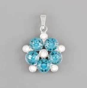 Přívěsek PARÁDNICE zdobí 5 kusů RIVOLI SWAROVSKI 6mm. Barva Blue Zirkon.