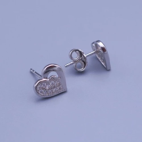 Stříbrné 925/1000 náušnice srdíčka 9mm se zirkony Velikost srdce - 9x8,5mm Váha náušnic: 1,4g Povrchová úprava rhodiem zabraňuje oxidaci a dává šperku vzhled bílého zlata SN14