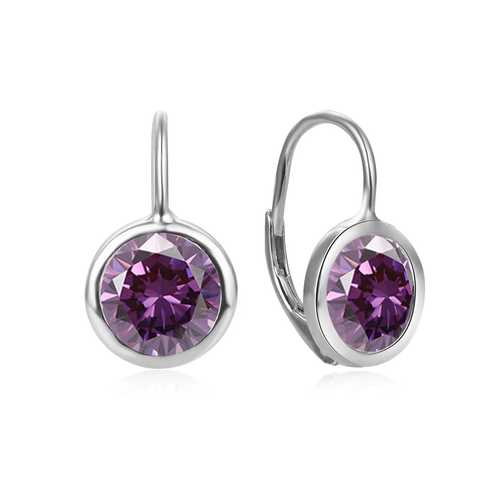 Dámské náušnice se většími kulatými zirkony fialové barvy