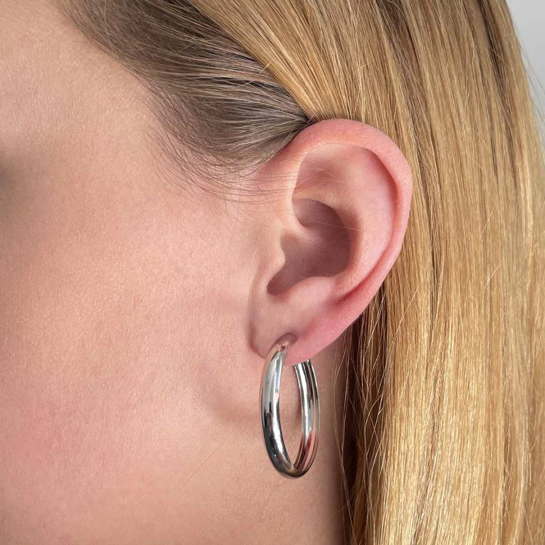 Jednoduché stříbrné náušnice velké kruhy o šířce 5 mm budou vynikat, ale přesto v sobě nesou lehkost. V jednoduchosti je krása. ;)