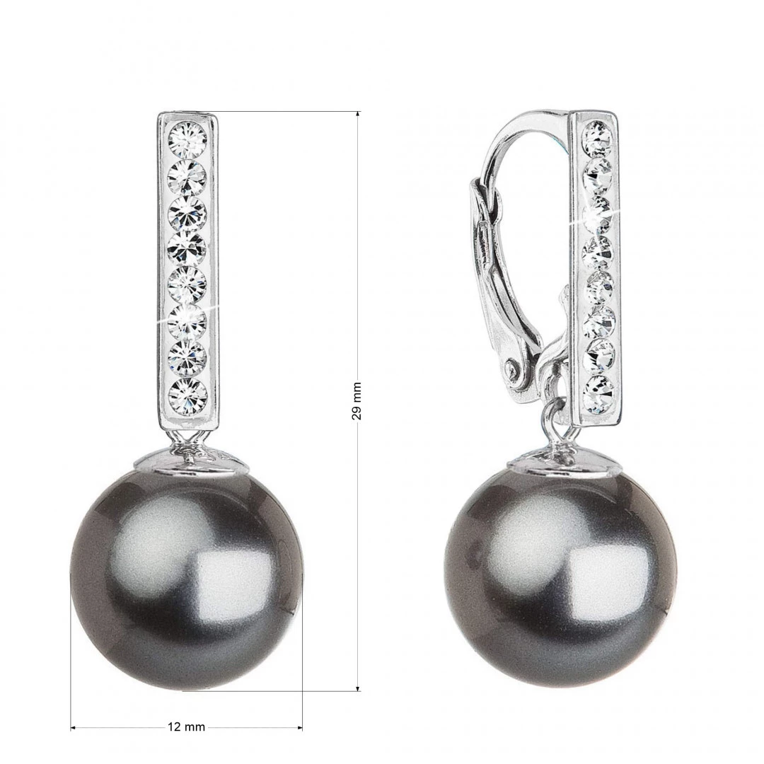 Stříbrné visací náušnice se perlou Swarovski vás okouzlí svým tradičním stylem. Proužek, na němž je zavěšena perla, je zdoben bílými Swarovski krystaly.