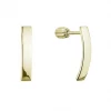 Geometrie v tom nejelegantnějším podání! Tyto jedinečné pozlacené stříbrné náušnice v podobě zaoblených obdélníčků jsou důkazem, že i minimalistický design může být nepřehlédnutelný. Kvalitní stříbro ryzosti 925/1000 se zlacenou úpravou zajišťuje dlouhotrvající lesk a ochranu proti zčernání či poškrábání. Bezpečné šroubkové zapínání poskytuje jistotu, že své náušnice neztratíte. Náušnice neobsahují nikl, a tak jsou ideální volbou i pro ženy s citlivou pokožkou. Náušnice vám budou perfektně ladit jak k business outfitu, tak k ležérnímu víkendovému oblečení.
