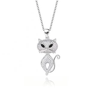 Stříbrný náhrdelník se přívěškem v podobě kočičky s černýma očima