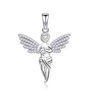 Stříbrný přívěšek ve tvaru andílka zdobeného zirkonem čiré barvy