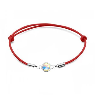 Stříbrný textilní náramek se stříbrným přívěškem dekorovaným AB měnícím kamínkem z dílny SWAROVSKI®