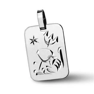 materiál stříbro (Ag 925-1000) povrchová úprava rhodium celková výška přívěšku 22 mm rozměr destičky 13 x 18 mm hmotnost 1,2 g