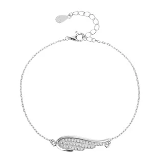 Dámský stříbrný náramek dekorovaný přívěškem ve tvaru křídla zdobeného zirkony čiré barvy