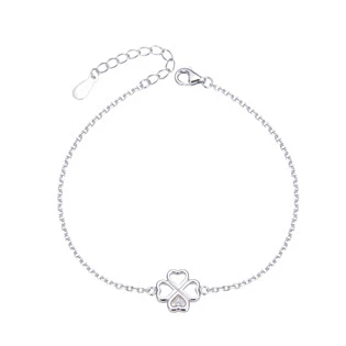 Dámský stříbrný náramek dekorovaný přívěškem ve tvavru čtyřlístku zdobeného zirkony čiré barvy
