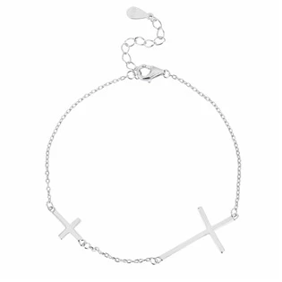 Dámský stříbrný náramek dekorovaný dvěma přívěškey ve tvaru křížku