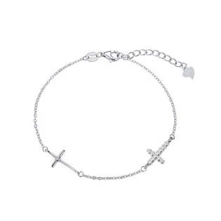 Dámský stříbrný náramek dekorovaný dvěma přívěškey ve tvaru křížku